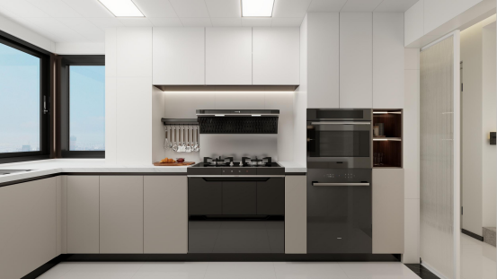 餐厅区域的圆形天花板与客厅错落有致,增添空间立体感,巧妙引导入户视觉焦点。整体色调明亮简洁,低饱和度色彩搭配让空间柔和,缓解视觉疲劳,营造出温馨舒适的用餐环境,使居住者感受到家的温暖与宁静。