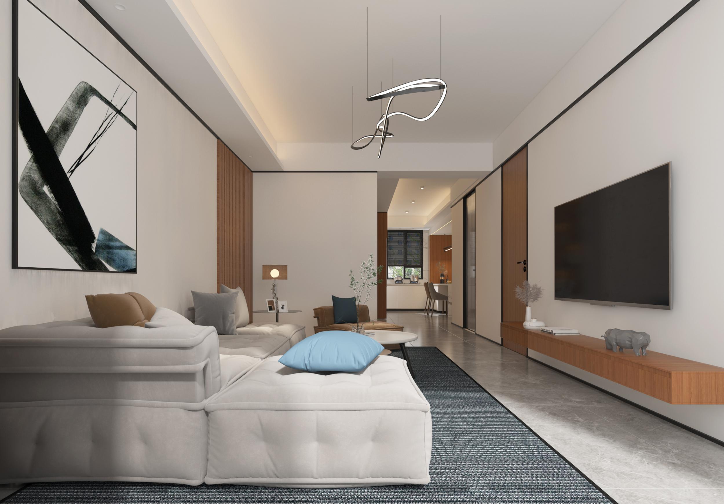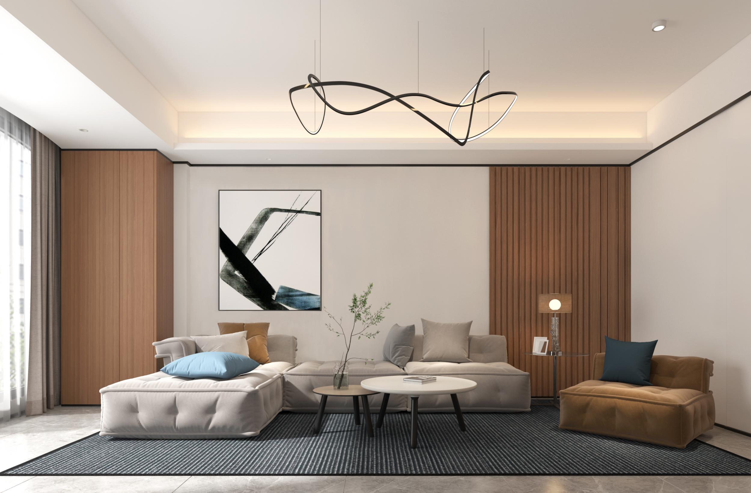 客厅以浅白墙为底,木色格栅与柜体勾勒东方线条。简约弧形吊灯呼应中式灵动,水墨挂画注入文化气韵。浅灰沙发搭配撞色抱枕,平衡传统与现代。开放式格局与线性灯光,让空间在简雅中透着滨海生活的通透感,实现 “东方意境,现代起居” 的融合。