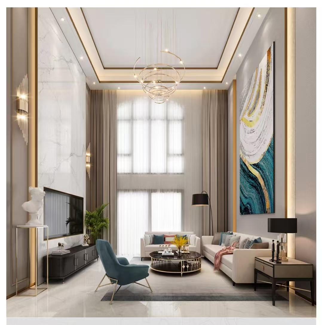 材质运用:大理石、木质、金属、皮质等多元材质融合,借不同质感碰撞出轻奢火花,如大理石地面的温润、金属线条的精致、皮质家具的细腻;