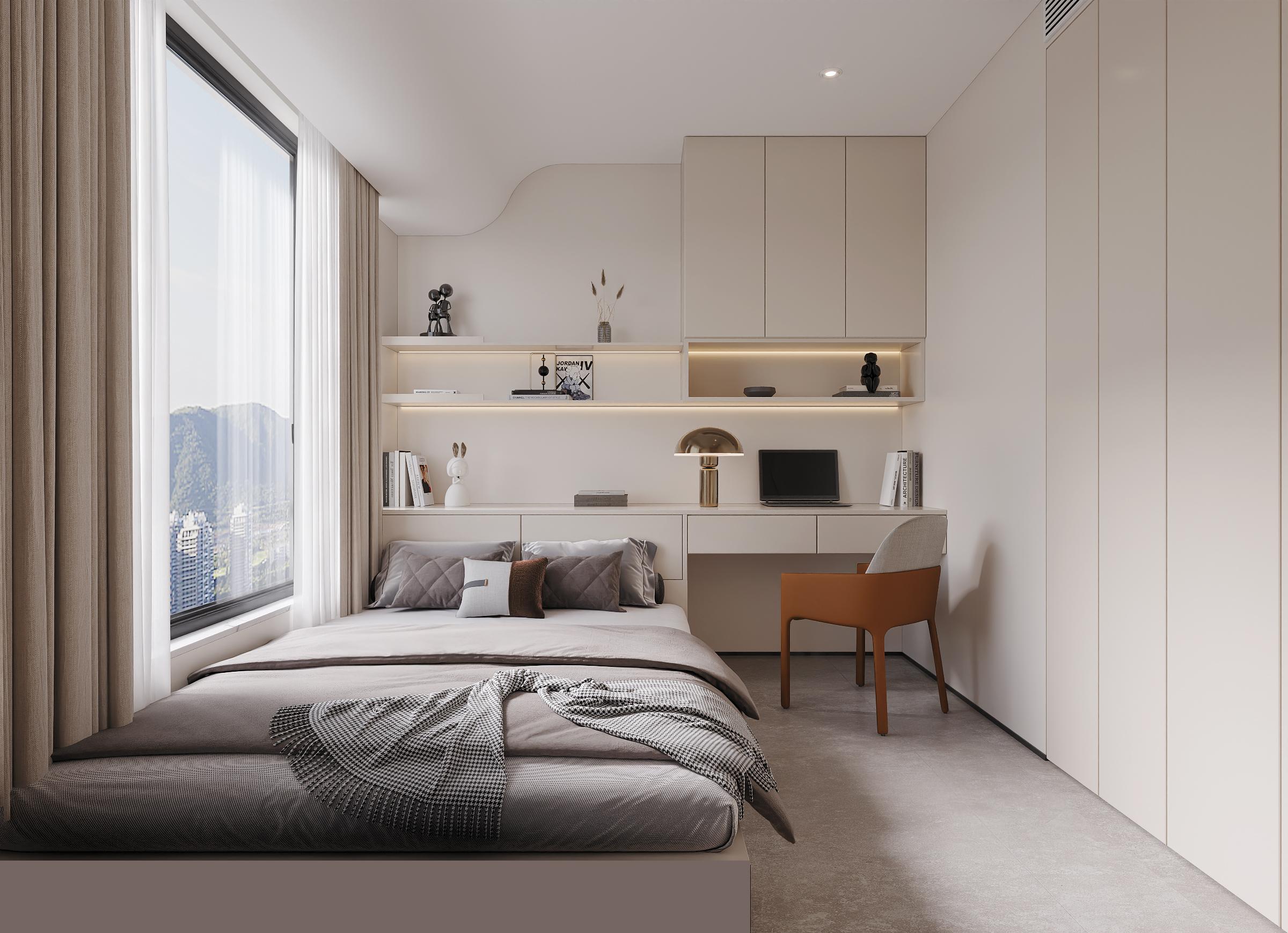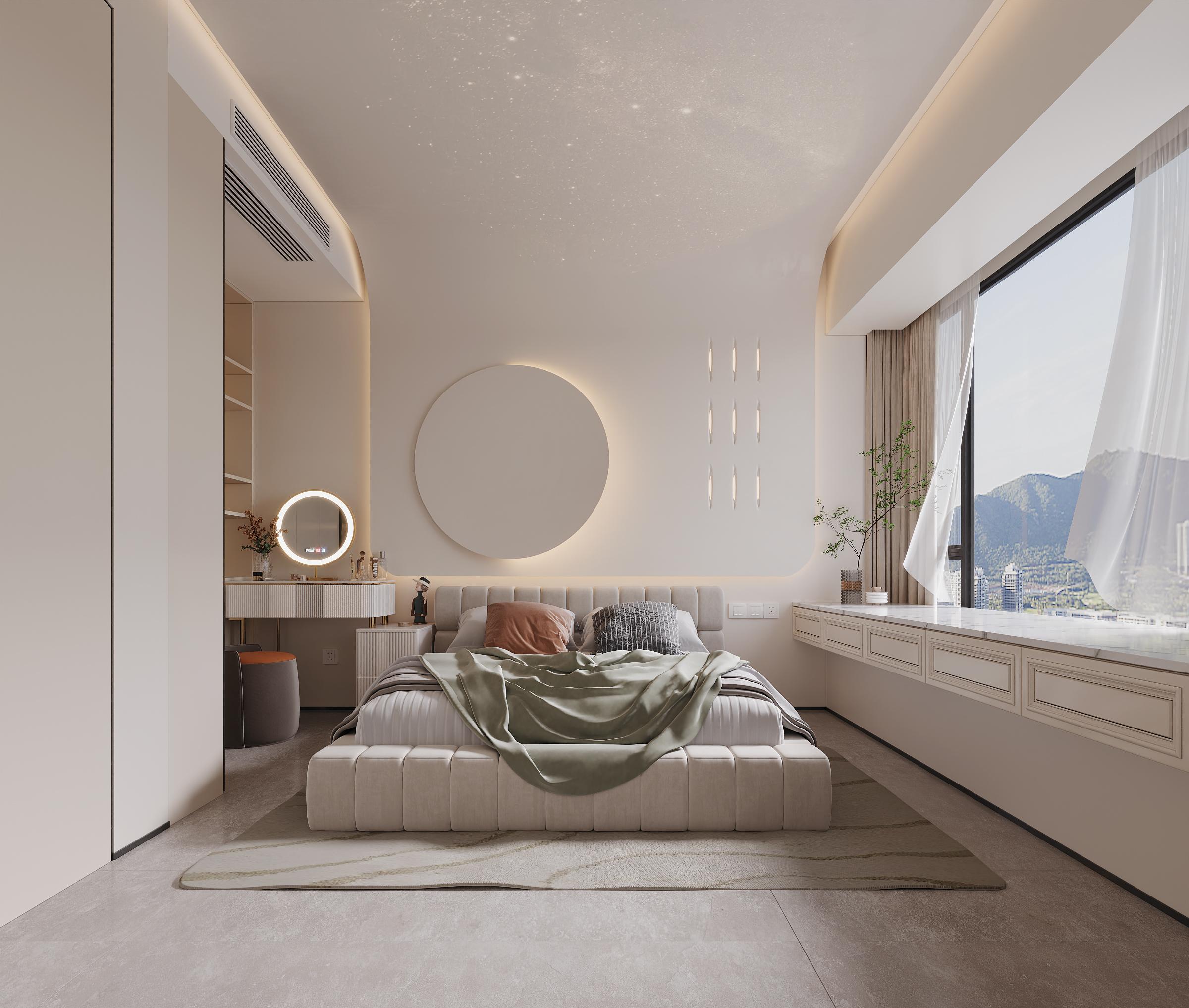 材质运用:微水泥、肤感板材、金属线条等低饱和材质组合,借细腻质感传递极简高级感,如微水泥墙面的温润、金属收边的精致;