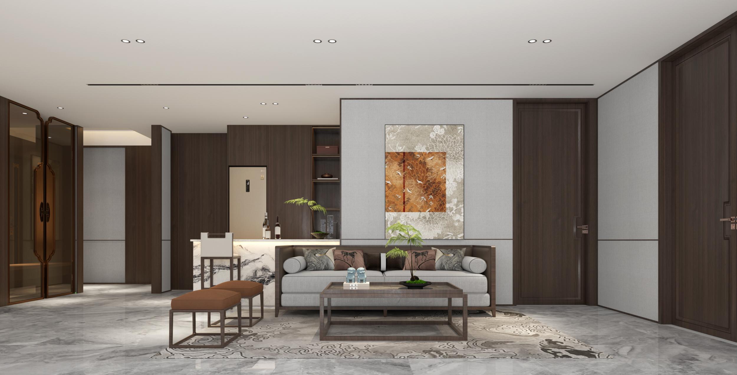 • 材质运用:木质、大理石、金属、玻璃等多元材质融合,如木质的温润、大理石的典雅、金属的精致,共同构建现代中式质感;