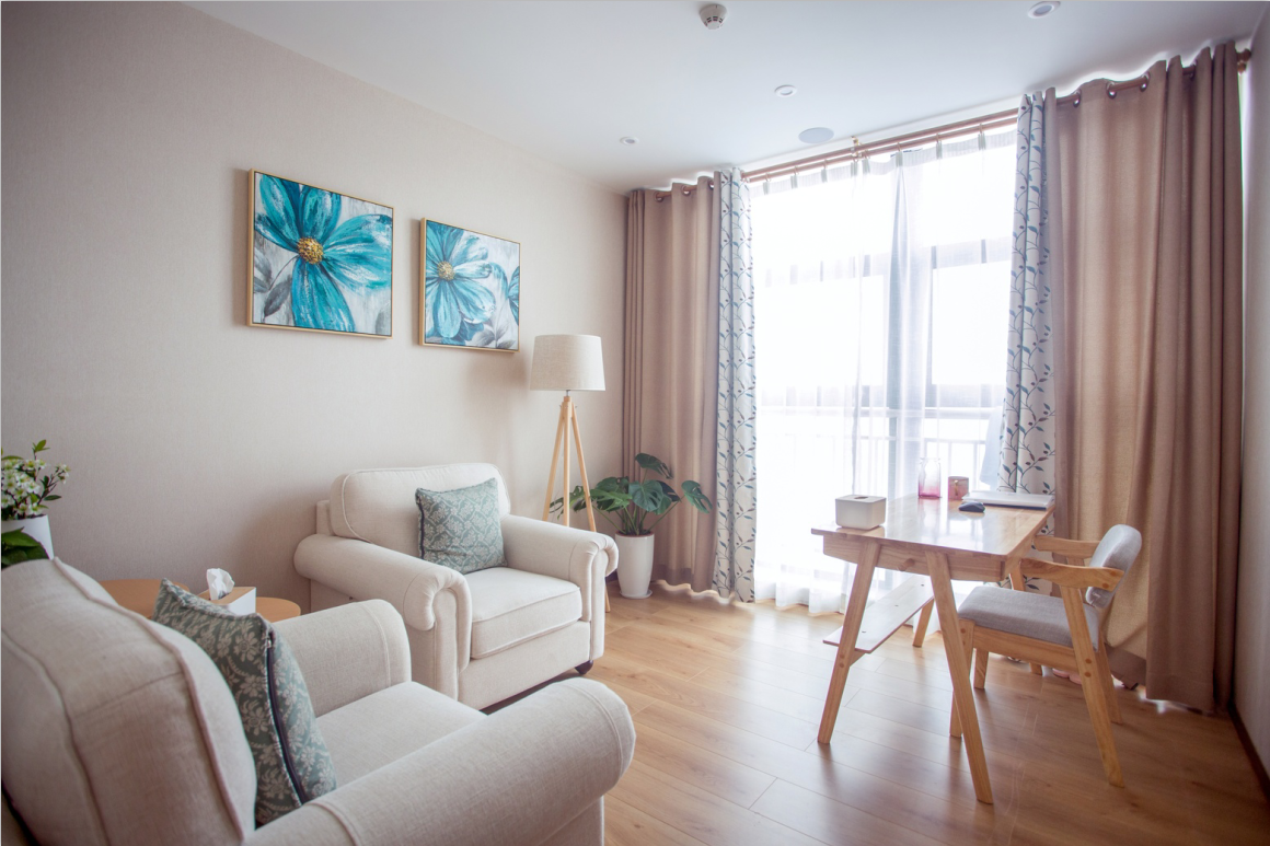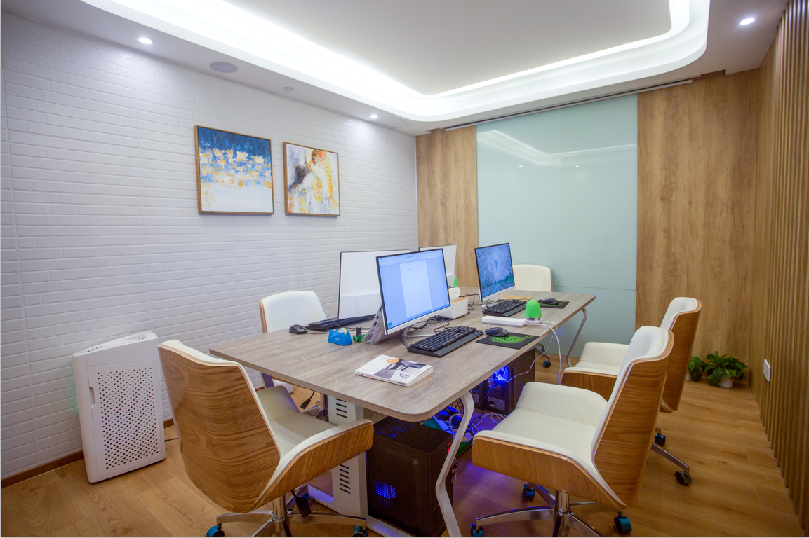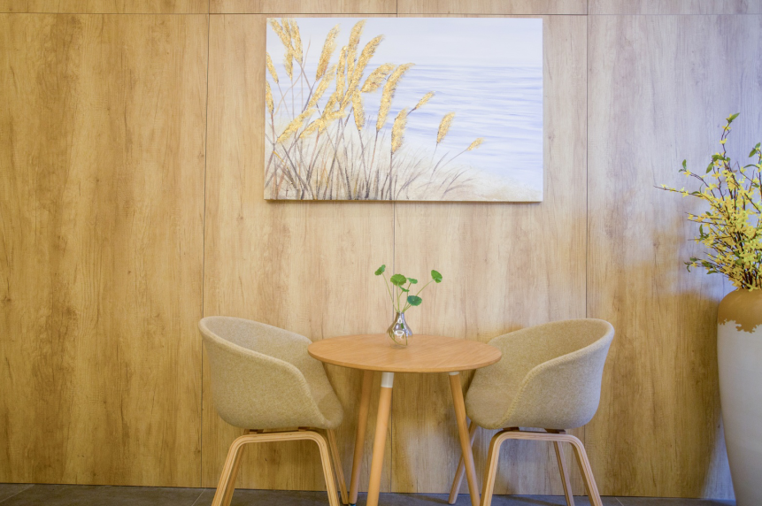 休闲交流区:简约休闲角落,木质墙面搭配圆形小桌与舒适座椅,装饰画传递宁静意境,绿植注入生机。为员工、学员打造课间放松、小型沟通的惬意空间,在忙碌中辟出自然悠闲之所,促进情感交流与身心舒缓。