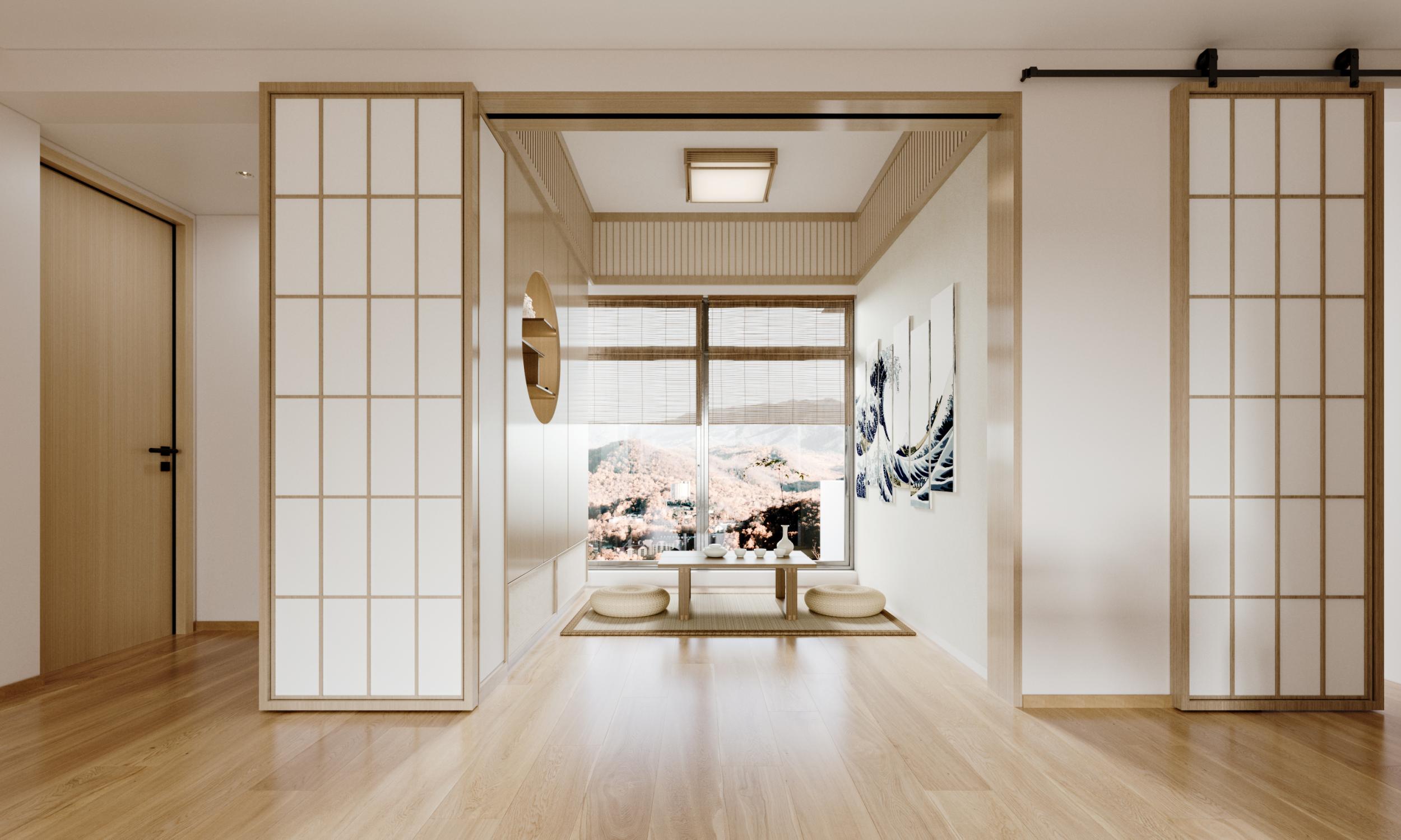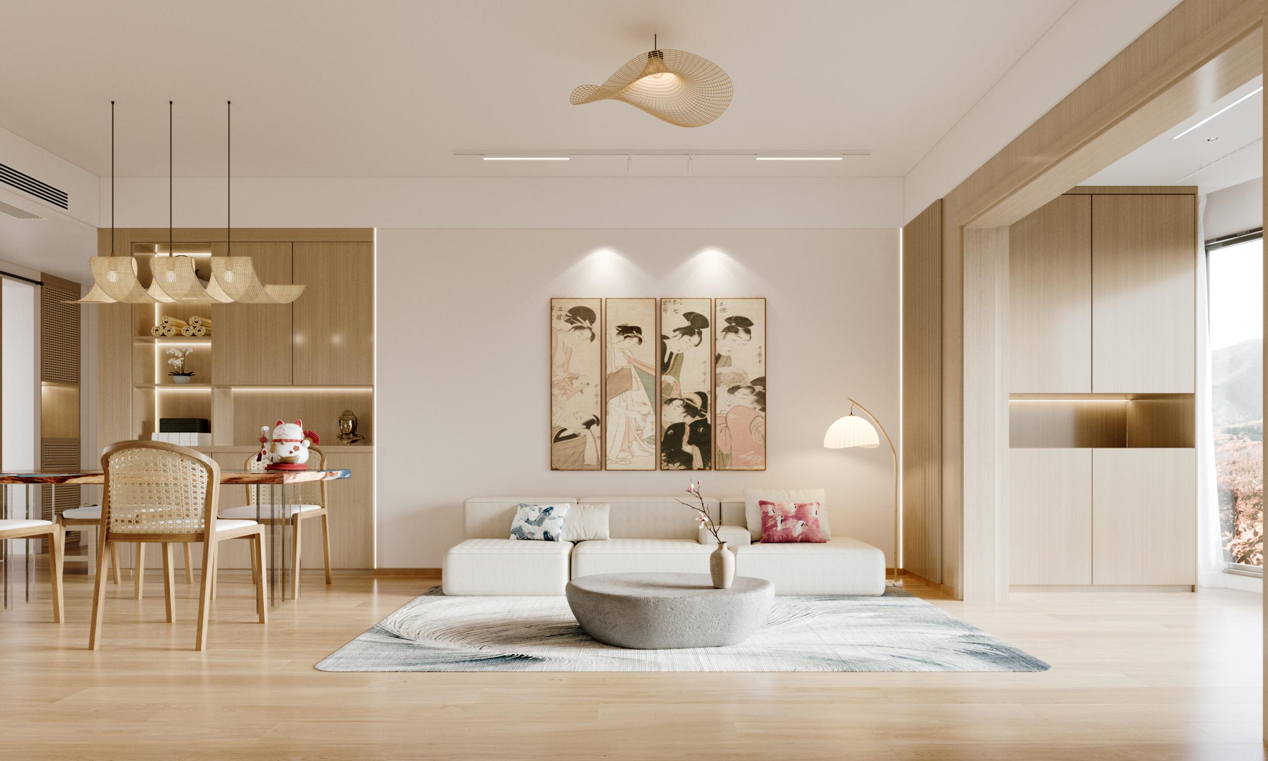 风格定位:日式简约风格(隶属现代风格大类,以自然质朴的木材、简洁流畅的线条、淡雅柔和的色调为核心,追求空间的静谧与实用,强调人与自然融合 )