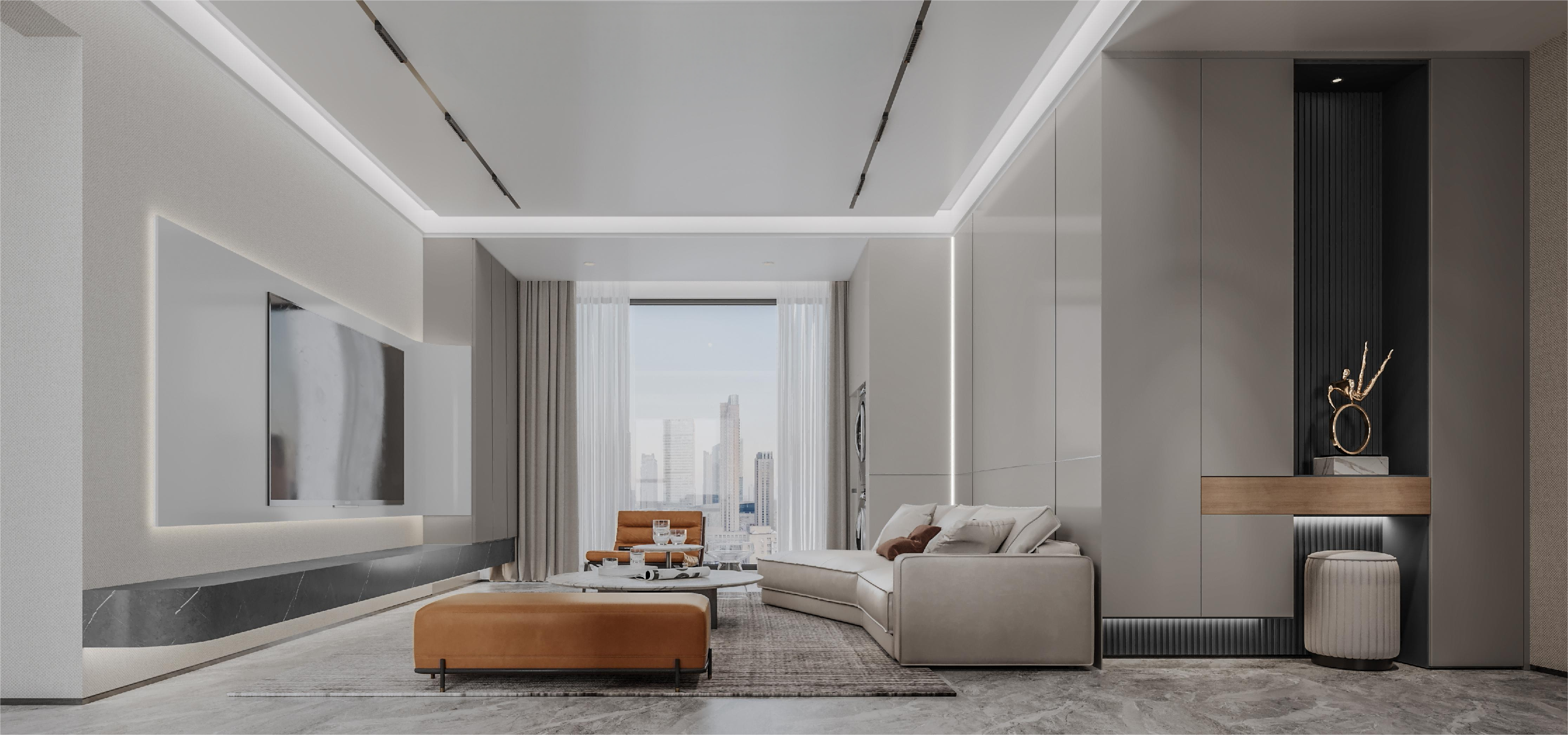 风格定位:现代简约风格(隶属现代风格大类,以简洁的线条、中性的色调、实用的功能布局为核心,追求空间的大气与质感,适配都市生活节奏 )