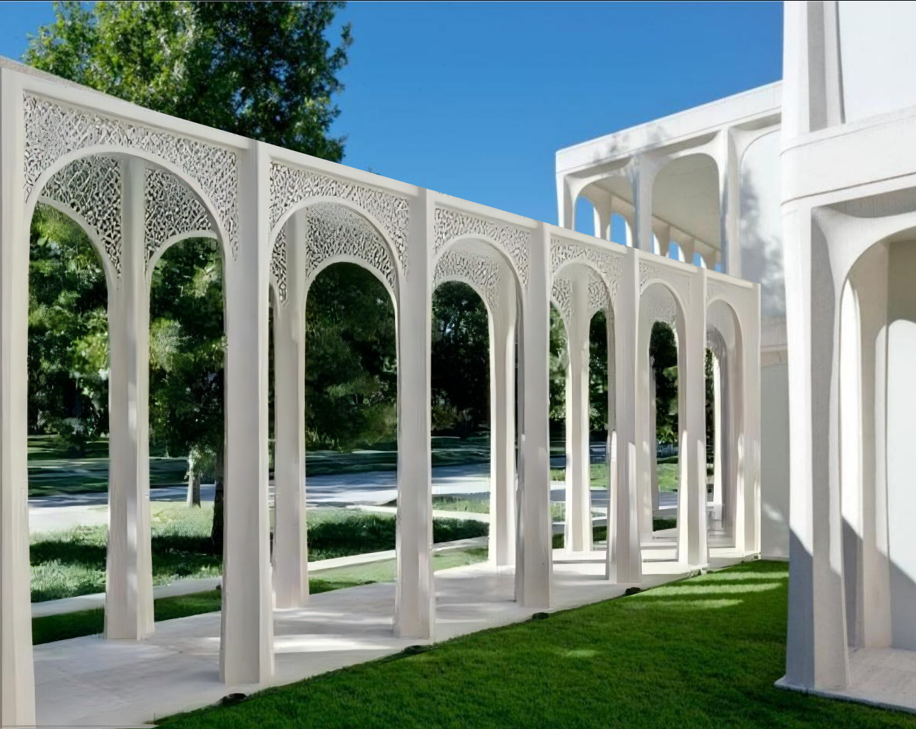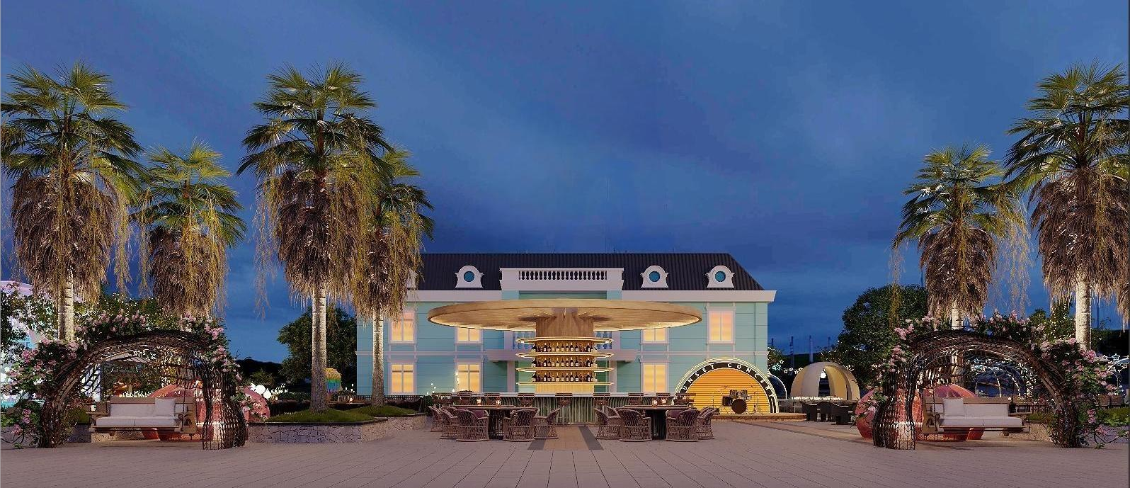 项目风格:现代法式融合风 —— 以法式建筑的优雅轮廓为基底,融合现代设计的时尚感、自然元素与网红打卡属性,通过曲线造型、暖调灯光、艺术装置,营造 “浪漫休闲 + 沉浸互动” 的复合型驿站体验。