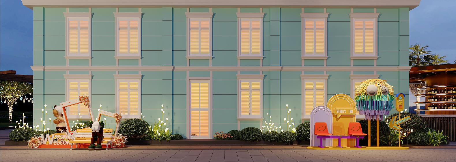 建筑融合:保留法式立面的优雅比例,以现代马卡龙色调、灯光设计注入活力;