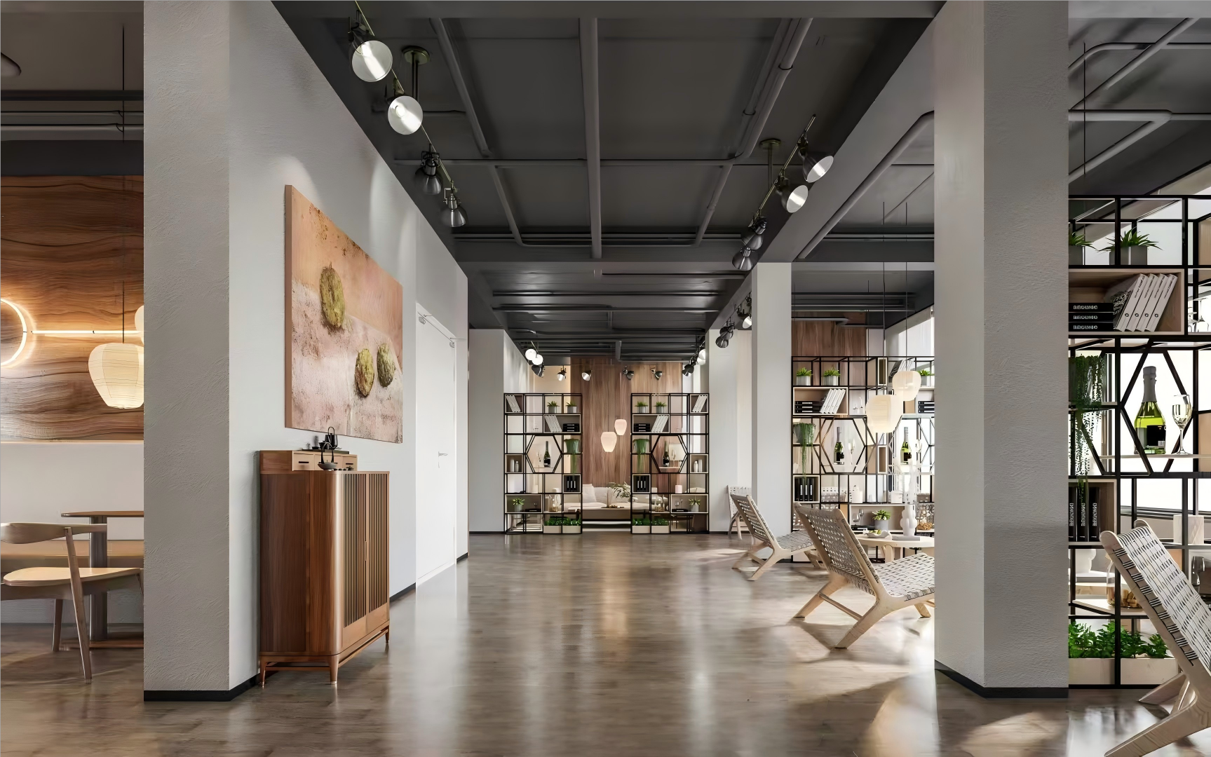 细节叙事:复古海报、工业灯、滑板陈列等元素,构建 “复古工业” 故事感,强化空间独特性。