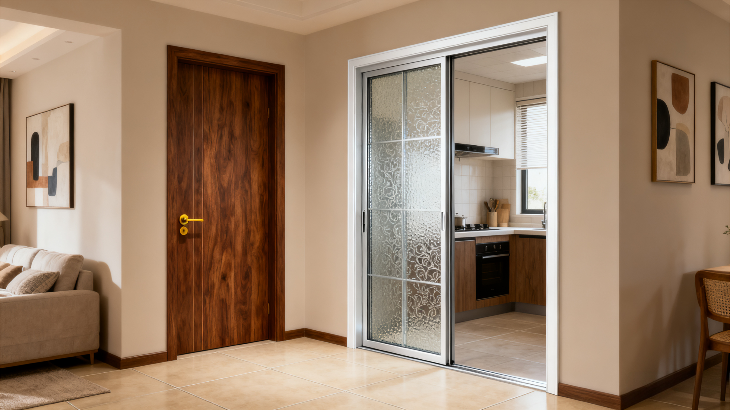 铝合金门:轻质却坚固,防潮性能优异,表面可做多种色彩处理,款式简约现代。适合厨房、阳台等潮湿或频繁开关的区域,使用寿命长且维护简单,无需担心受潮变形。