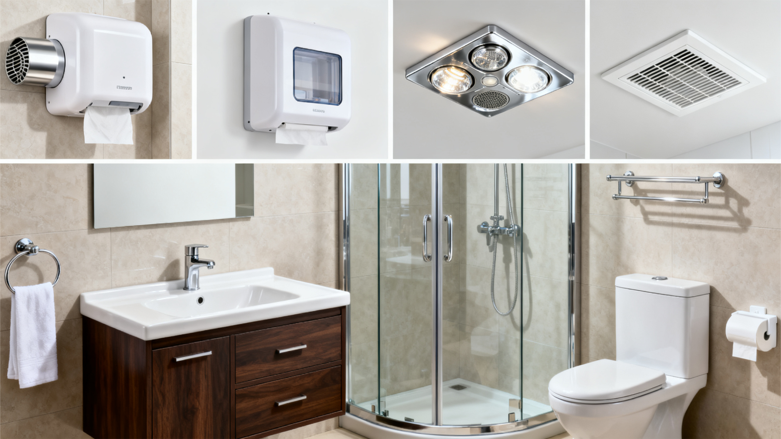 小机电件:干手器无需使用毛巾,洗完手后快速烘干,干净卫生;送纸机自动出纸,避免手部接触污染;美发器方便洗完澡后吹发;浴霸与排气扇则解决卫生间取暖与通风问题,尤其冬季洗澡时,浴霸能快速升温,排气扇可排除潮湿空气,防止霉菌滋生