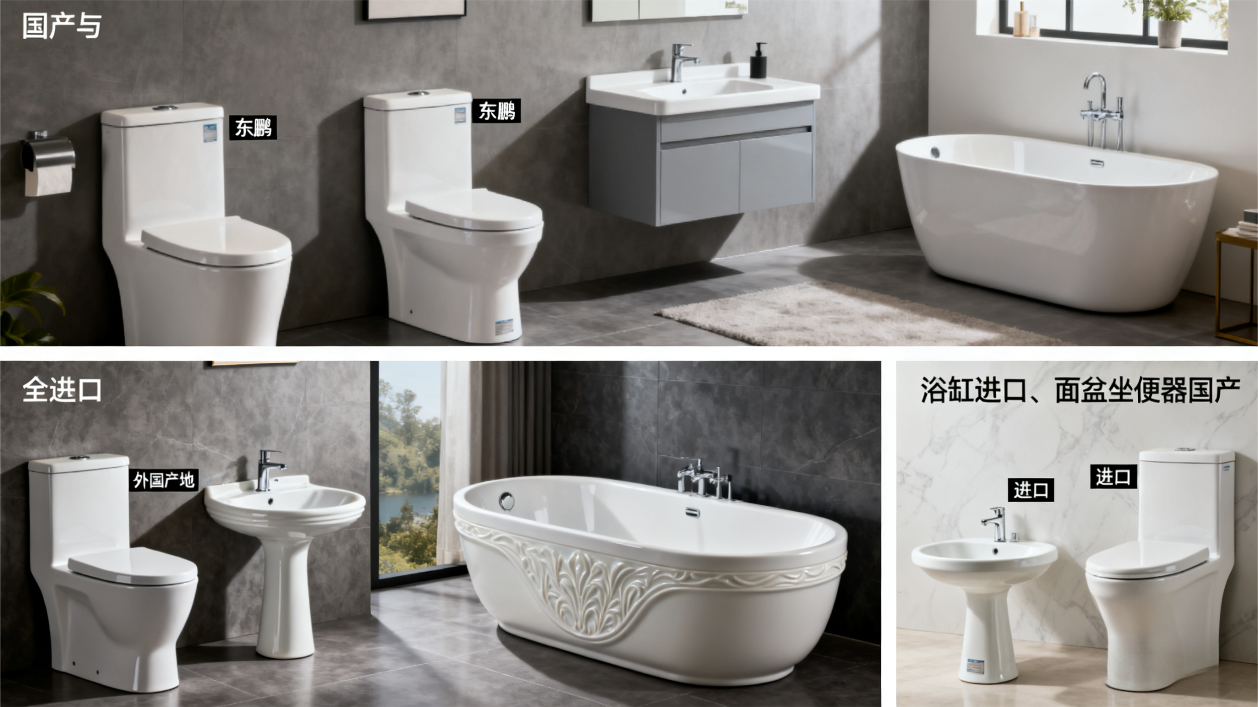 国产三件套:价格普遍低廉,性价比高,适合预算有限的家庭。虽部分产品在细节工艺上与进口产品有差距,但也有东鹏等知名国产品牌,质量可靠、售后完善,能满足日常使用需求,是多数家庭的务实之选。