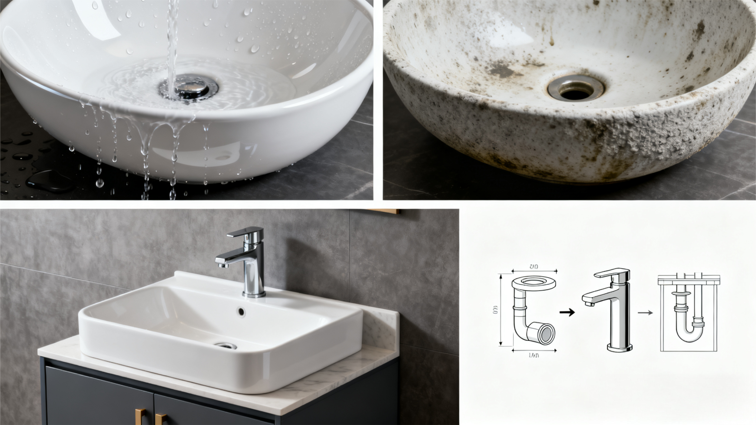 外观上,要选瓷质细腻、表面光洁细密的产品,这类洗脸盆污渍易被水冲净,无需频繁用专用清洗剂;若外观粗劣,不仅易脏污,还会加速瓷面老化;
