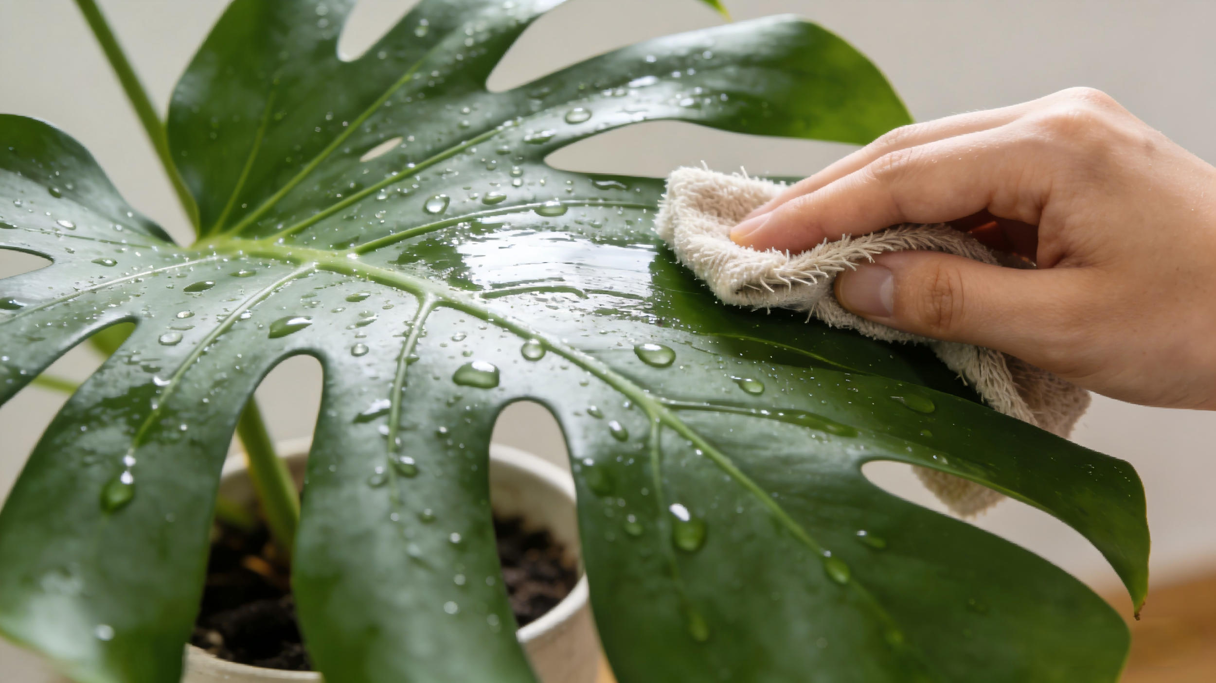 常规枝叶清洁方法:切勿直接将盆花放在水龙头下冲洗,避免温度骤变影响生长。可先用清水淋湿植株,左手托住需清洁部位,右手用干净软布或海绵蘸水擦拭尘土;嫩叶、嫩枝仅用清水喷淋即可,老枝老叶尘厚时可仔细擦洗,注意避免折断枝叶。