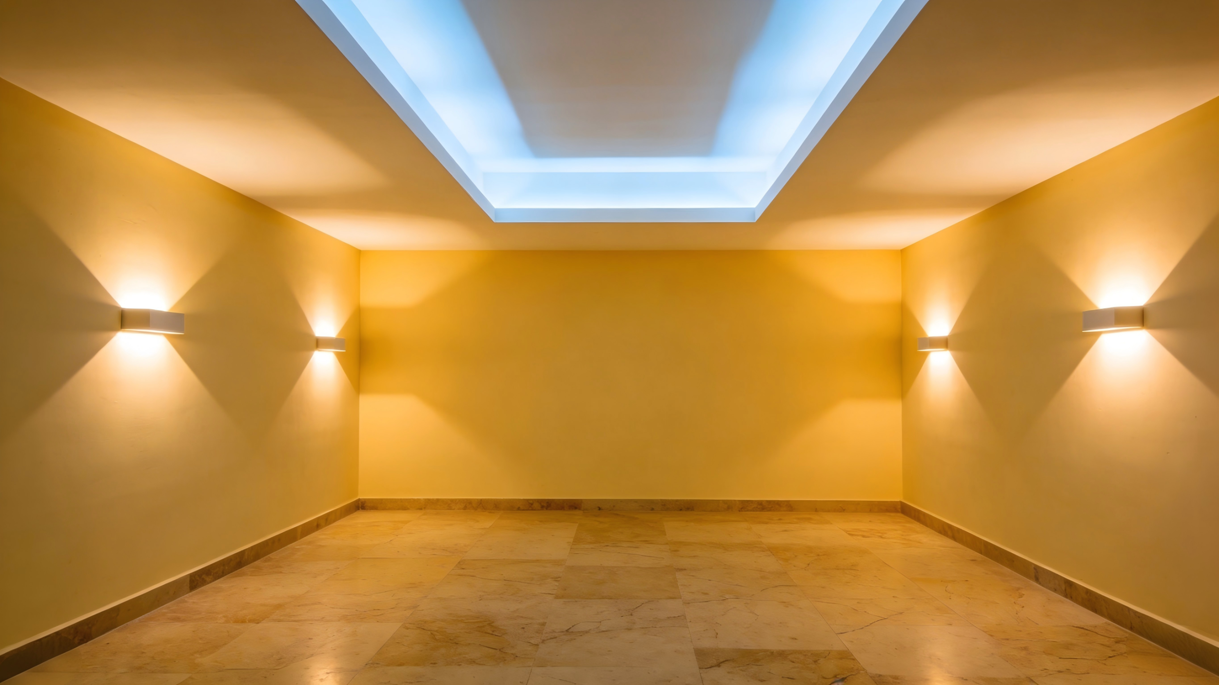 此外,照明更是渲染居家氛围的核心手段。现代居室中,利用光影营造专属氛围的案例随处可见:淡黄色墙面与地面的房间,搭配暖光源与地面石材相映,能凸显温暖惬意的居家感;白色吊顶搭配非直接照明的冷光源,可巧妙衬托暖光源,让空间氛围层次更丰富,兼顾舒适与美观。