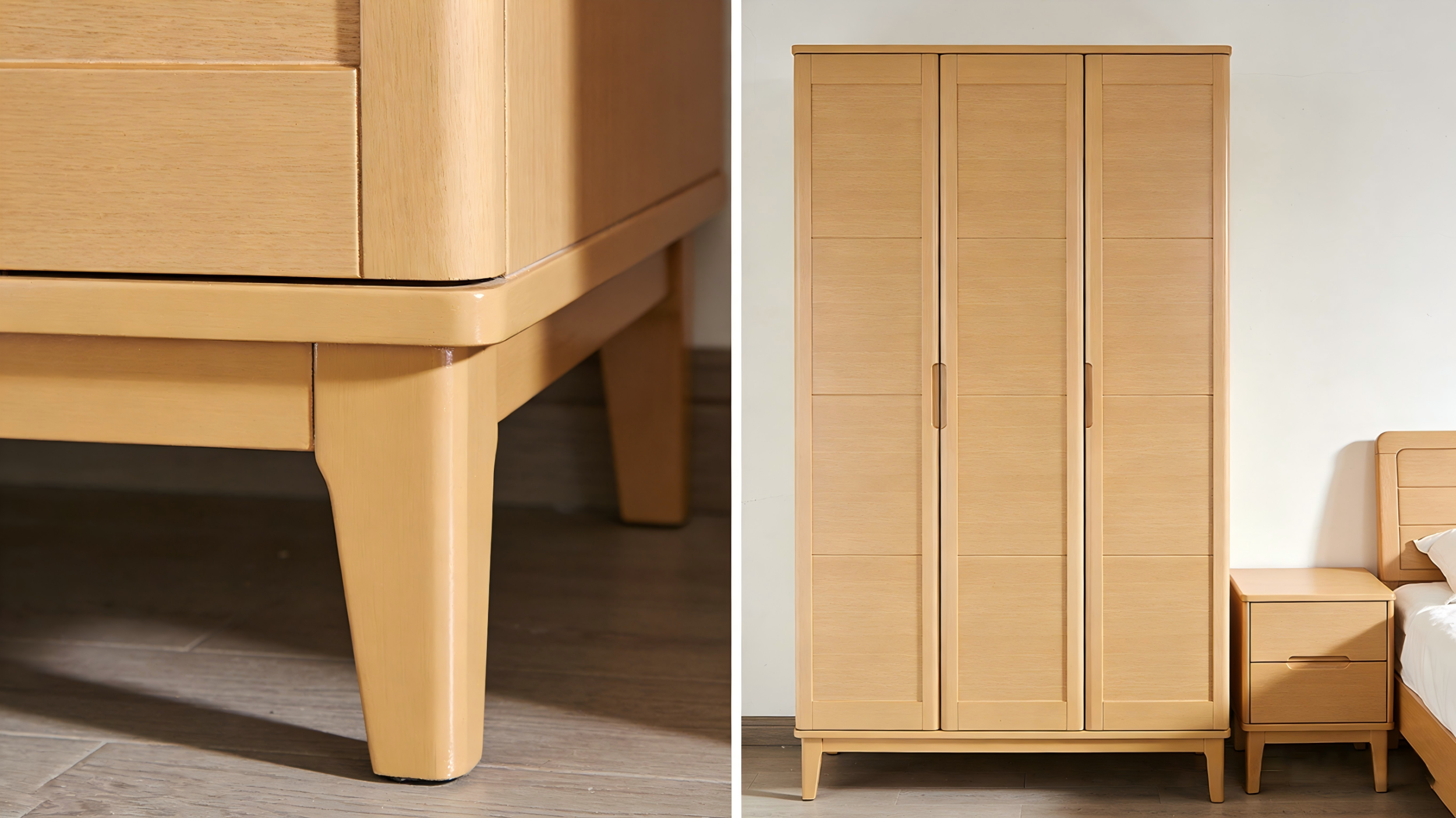 用料做工一致:家具相似部位的用料需统一,不可有的用胶合板、有的用纤维板、有的贴装饰面板,同时做工标准需一致,保证耐用性。