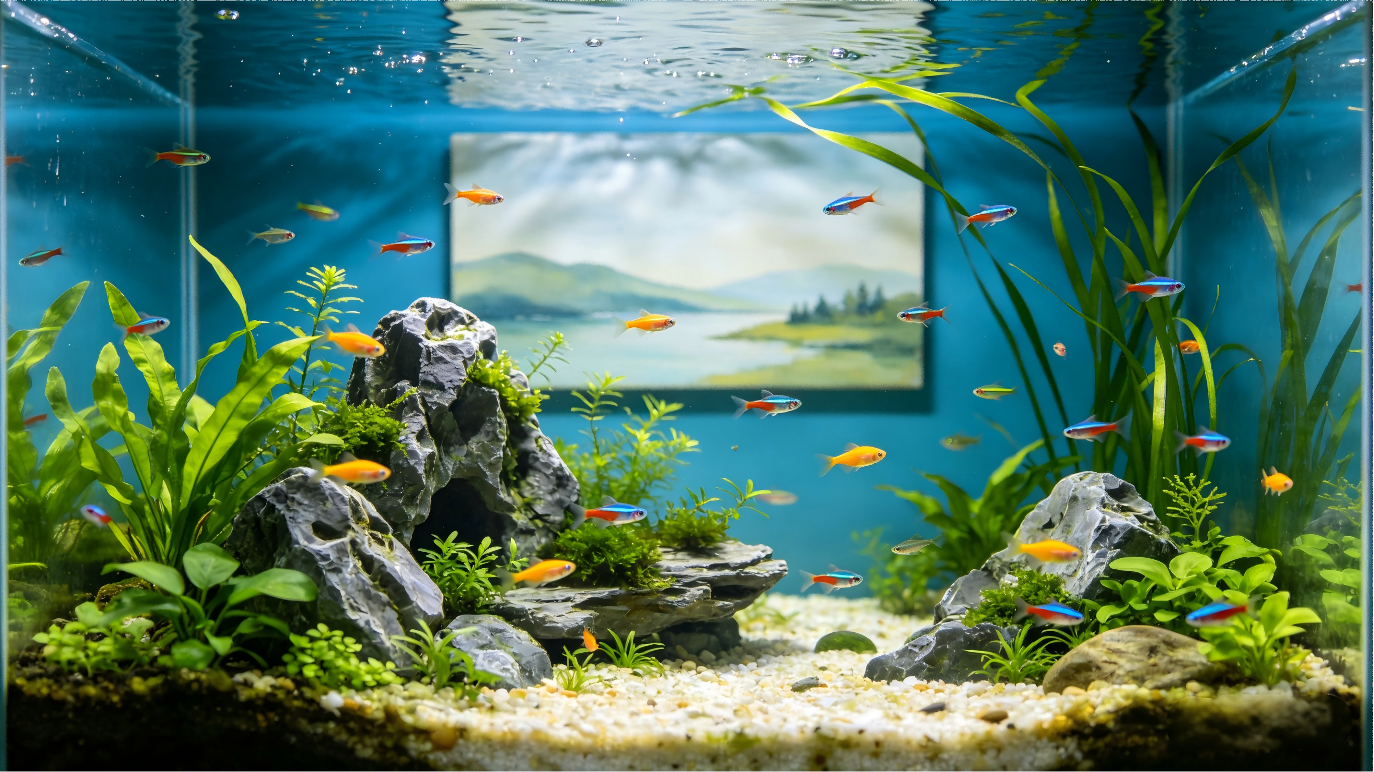 日常养护也很关键,需定期清洗水箱、更换清水,提防大鱼攻击小鱼。水箱后方可悬挂风景画,搭配柔和灯光,让水族景观更具氛围感。用心布置与养护,便能拥有一方灵动的水中天地,为家居注入生机与诗意。
