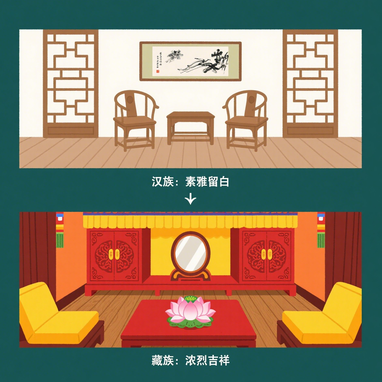 这些民族风格的差异,藏在细节里:藏族的中式风格爱用朱红与明黄(宗教建筑的色彩基因),家具上的雕刻多是莲花与宝瓶(象征吉祥);回族的中式空间则偏爱素雅的白与绿,木雕纹样多为植物(避开动物图案),线条更简洁流畅。正是这些地域与民族的特色,让中式古典风格像一条奔流的河,既有主干的雄浑,又有支流的灵动。