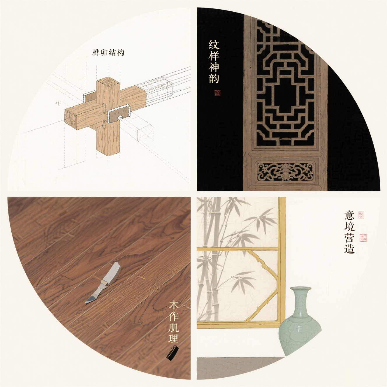 中式古典风格的 “形”,始终围绕着木材展开。梁架用榫卯结构(不用一根钉子,却能承载屋顶的重量),隔断用木格栅(棂条的穿插咬合,藏着 “阴阳相生” 的哲学),地板选硬木(如紫檀、鸡翅木,越踩越光亮,像在时光里慢慢包浆)。连门窗都透着对木材的尊重:实木门的雕花不刻满整面,只在门心留一块方形雕板(刻兰草或竹枝,取 “兰生幽谷,竹有气节” 之意),其余部分打磨得光滑如玉,露出木材本身的纹理。