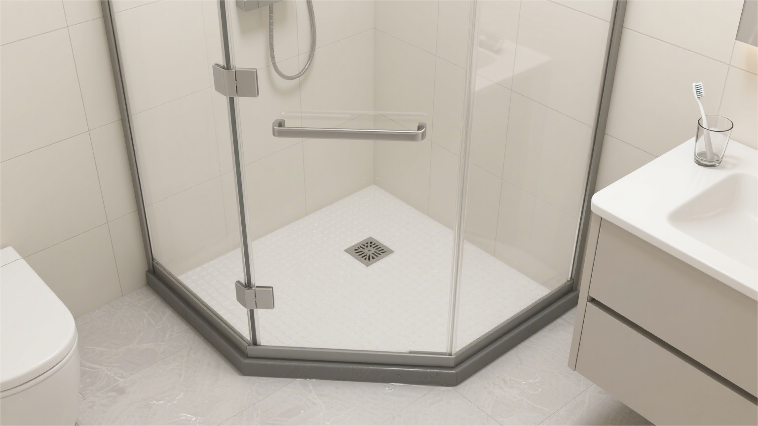 淋浴房:最常见的解决方案,适合多数卫生间。多安装在角落,平面形状有正方形、长方形、扇形、钻石形等,其中 800-1000mm 的正方形淋浴房适配多数中小户型。钢化玻璃材质的淋浴房密封性好,能有效阻挡水花,洗完澡后干区几乎无积水。