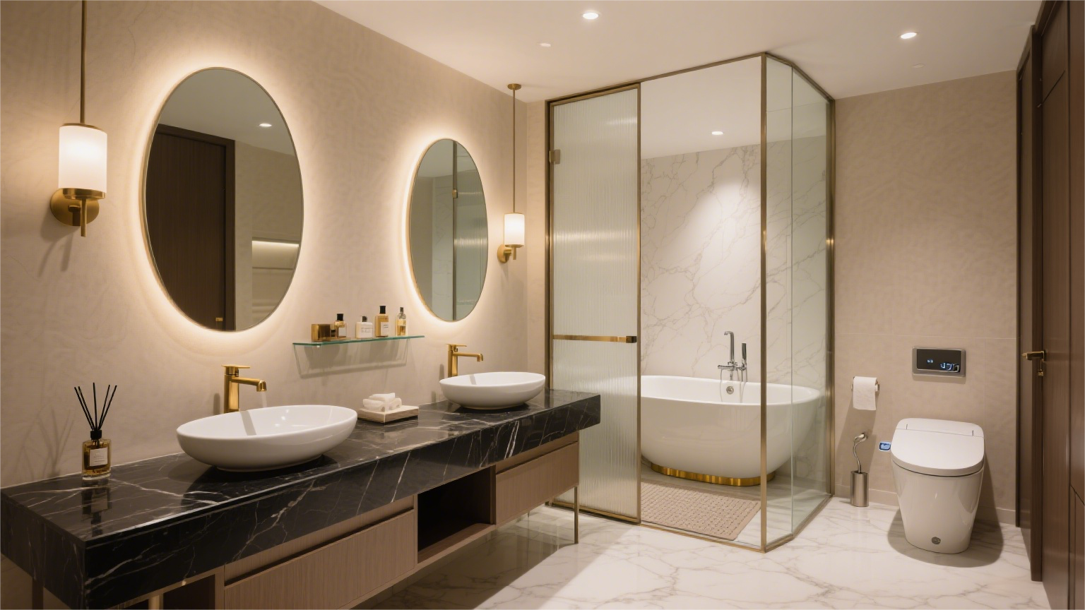 随着居住品质的提升,双卫生间设计已成为现代家庭的标配。主卫生间与次卫生间虽同为卫浴空间,却因使用场景与受众不同,在设计逻辑上大相径庭 —— 主卫是主人的私享领域,承载着放松与个性表达;次卫是家庭的公共界面,侧重实用与通用性。两者的设计差异,恰是居住者生活态度的缩影。