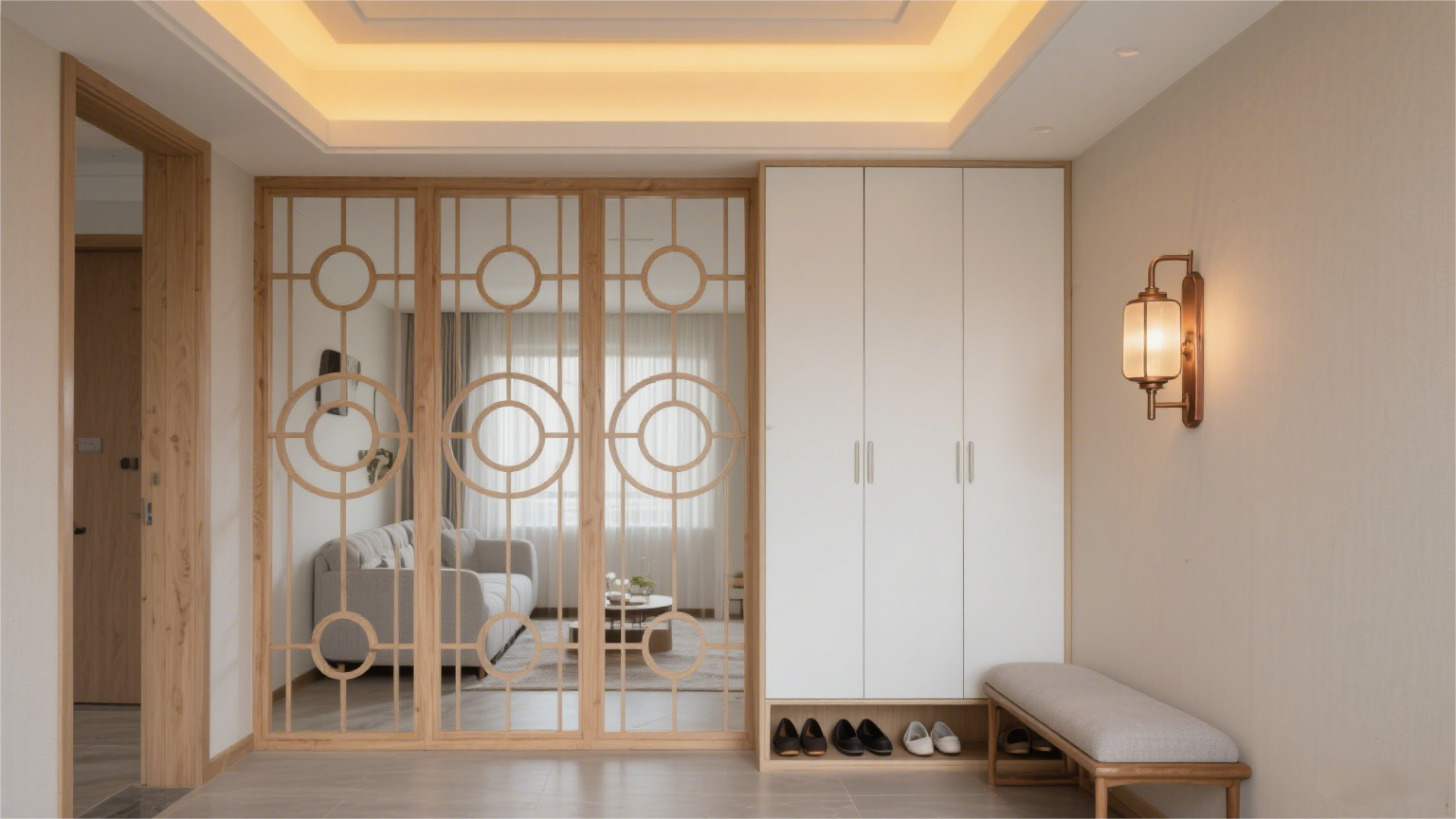 玄关柜和隔断的材质,直接影响 “遮与透” 的平衡。