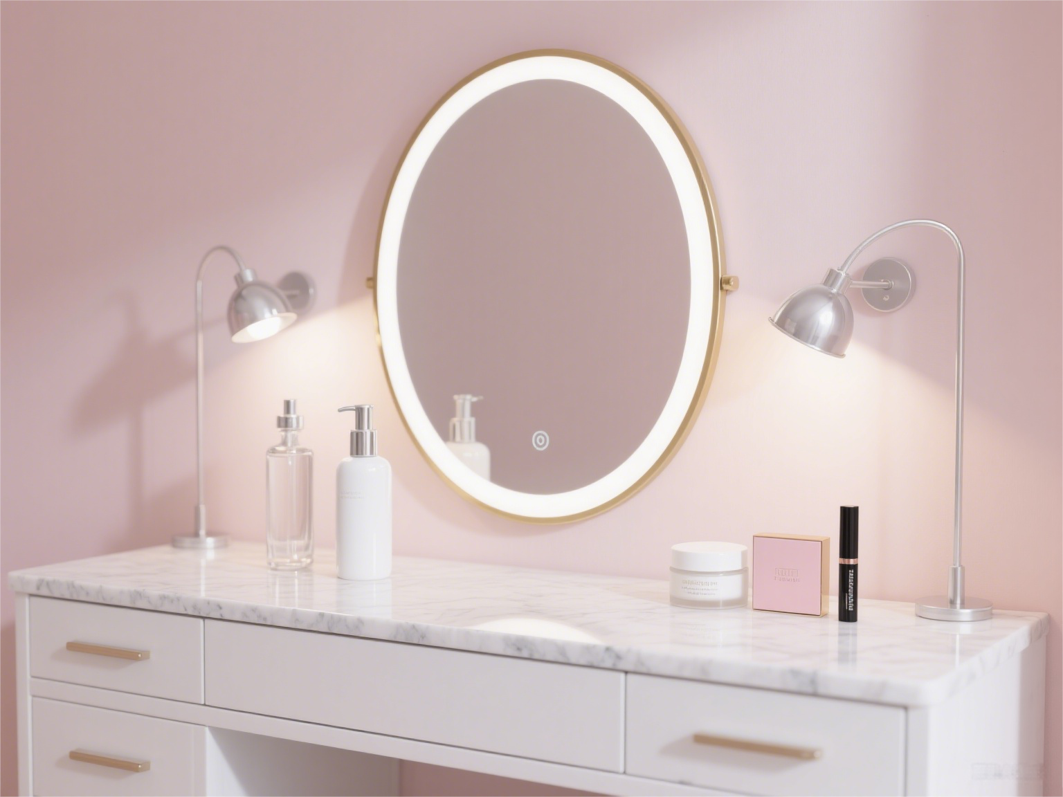 梳妆台灯光:很多人习惯在镜子上方装灯,其实这会在脸上投下阴影,化妆时容易涂不均。聪明的做法是在镜子两侧装小壁灯,光线从侧面照过来,脸部亮度均匀,和自然光效果最接近。光线选接近自然光的暖白光(色温 4000K),化妆时能更精准地把握色彩。