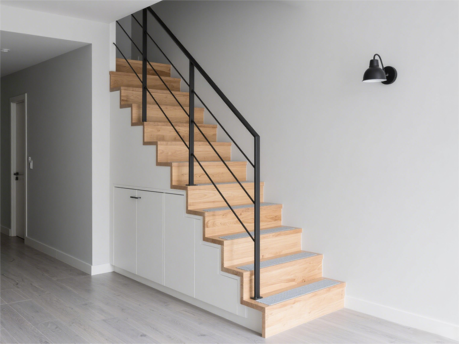 它适合层高不高、面积紧凑的房子,比如 loft 公寓。踏板用实木或钢板,扶手选纤细的金属杆,能减少压抑感。但要注意:台阶高度别超过 18cm,宽度至少 25cm,不然老人小孩上下容易绊脚。如果家里有蹒跚学步的孩子,最好在扶手内侧加一层防护网,避免小手伸进缝隙。