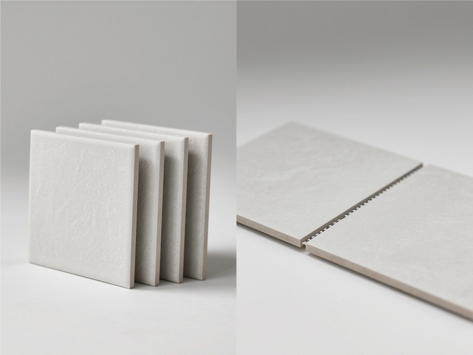 叠放对比:任选几块瓷砖,将它们的边缘对齐叠放,观察厚度、宽度是否一致;