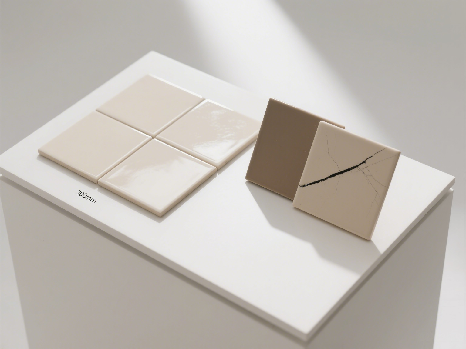 记偏差标准:300mm 以下规格的瓷砖,尺寸允许 ±1mm 偏差;300mm 以上规格的瓷砖,允许 ±2mm 偏差。若偏差超过标准,说明瓷砖加工精度差,坚决不选。