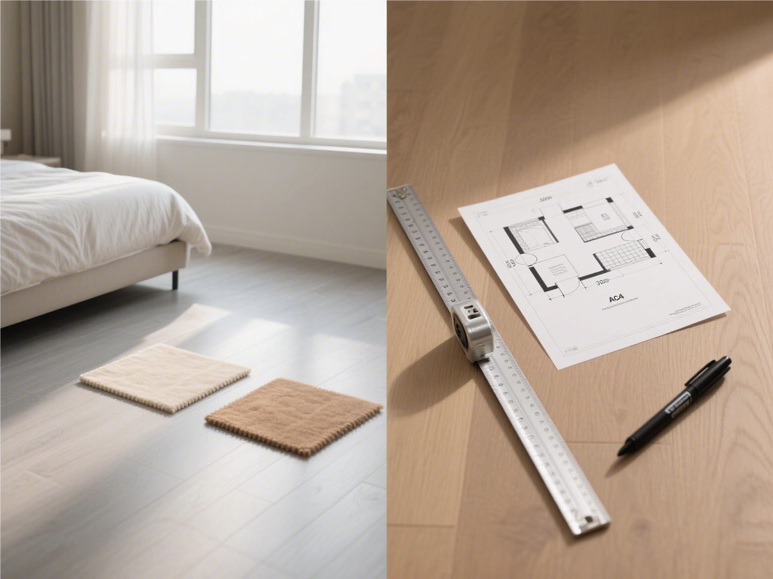 核准实际面积,算清角落形状:购买前先测量室内实际面积,尤其要注意弯角和不规则角落的形状,按实际尺寸选购,避免买多浪费,或买少导致出现不当接缝(接缝多会影响美观,还容易藏污纳垢)。