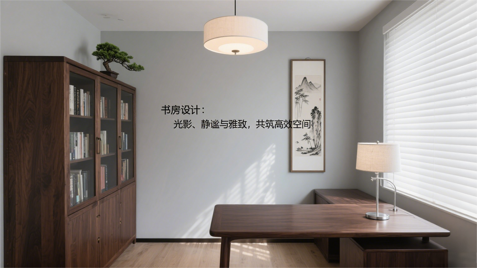 书房设计需兼顾光线、静谧、雅致与效率。光线上,自然光与灯光结合,避免眩光;选隔音材料、冷色调营造安静环境;用书籍、字画、绿植点缀出雅致;书柜按需求分区,动线合理提升效率。让书房成为专注又舒适的精神空间。