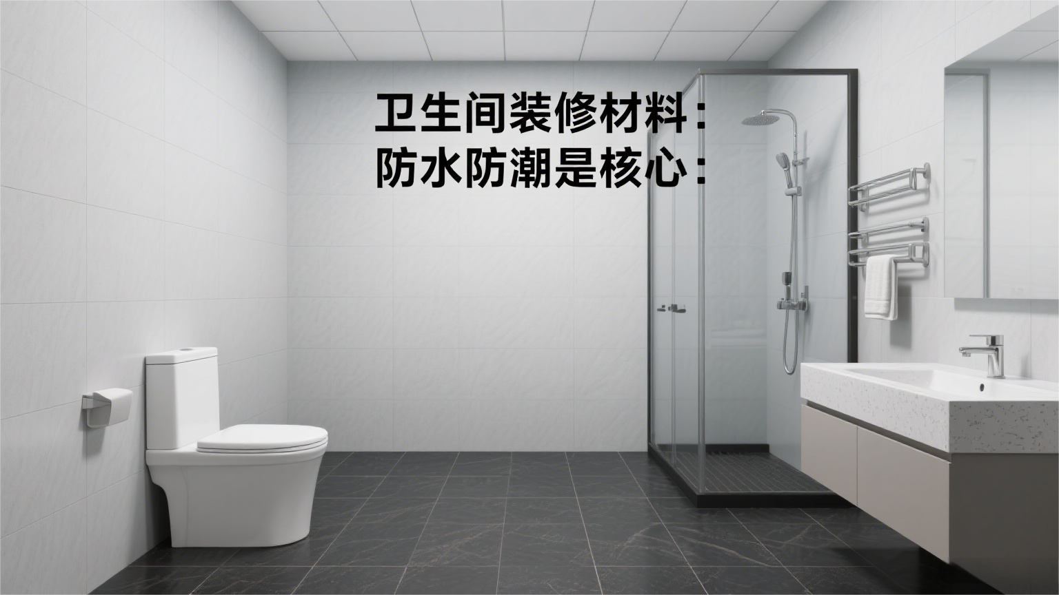 卫生间装修材料以防水防潮为核心。地面用防滑地砖,设排水坡度;顶面选铝扣板等防水材料;墙面用瓷砖、大理石等易清洁且抗霉变的材料。洁具需适配空间,洗手台用大理石台面,马桶分蹲式与坐式,浴缸或淋浴房选安全材质。配件选不锈钢、玻璃等防水材料,色彩协调统一,确保实用与美观。