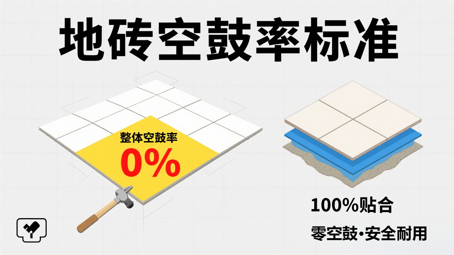 在地砖铺贴施工中,空鼓率是衡量工程质量的核心指标之一。地砖作为地面装饰的重要部分,直接承受日常踩踏、家具重压等,空鼓问题会严重影响其稳定性与使用寿命,因此规范对空鼓率有严格要求。