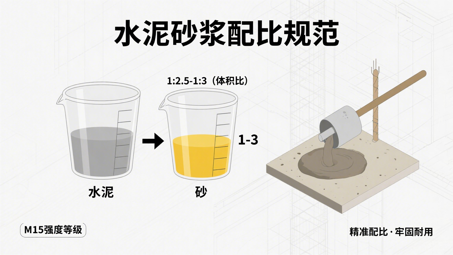 水泥砂浆是装修中用于抹灰、找平、粘贴瓷砖等的基础材料,其配比直接影响强度、粘结力和耐久性。合理的配比能避免墙面开裂、瓷砖脱落等问题,因此行业有明确规范。