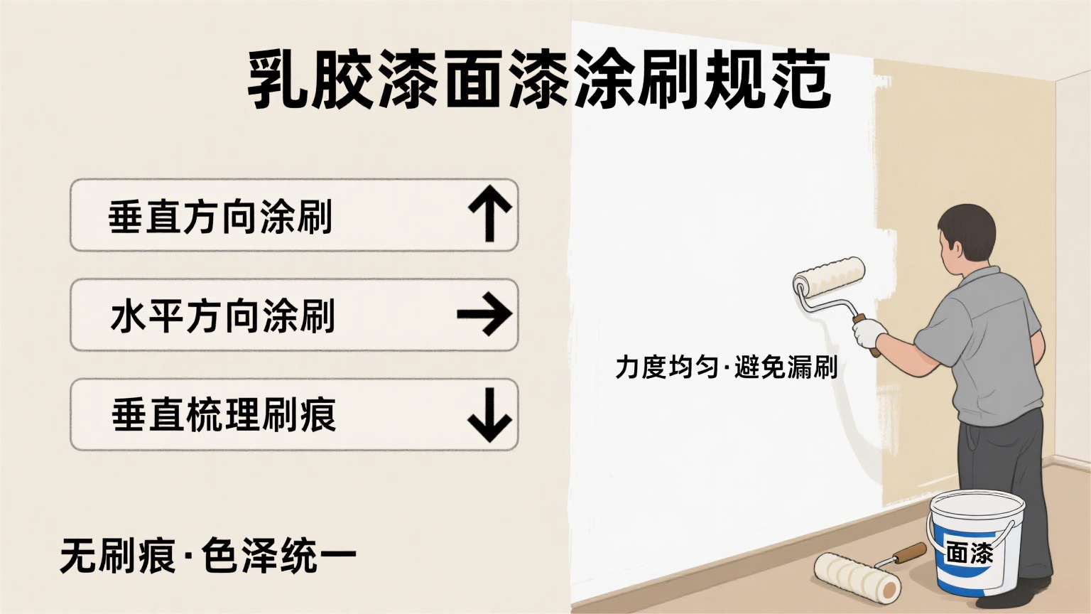 乳胶漆面漆的涂刷质量直接影响墙面的最终效果,如平整度、光泽度和耐久性。掌握正确的涂刷方法,能避免出现刷痕、流挂、色泽不均等问题。