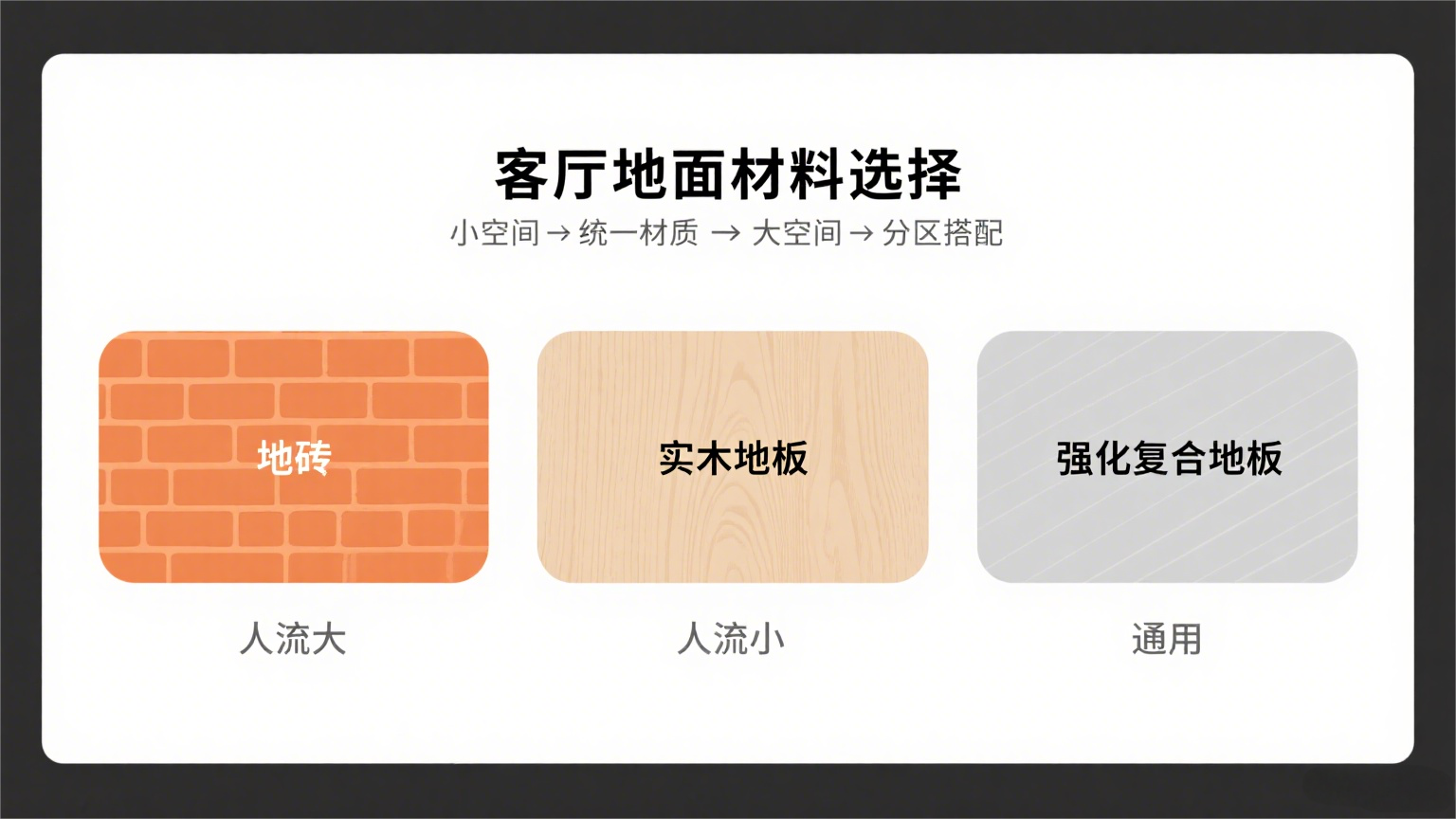 客厅作为家庭活动和接待访客的核心区域,地面材料的选择不仅影响日常使用,还关乎空间美观。很多业主在挑选时不知从何入手,其实关键要结合家庭实际情况,下面详细解答。