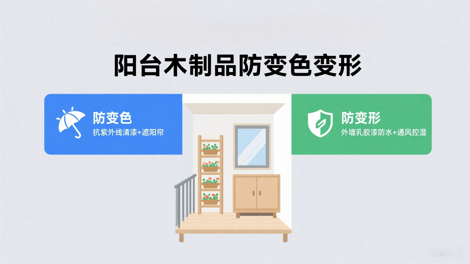 阳台作为连接室内与室外的空间,常被用来放置储物柜、花架等木制品,但长期暴露在光照和可能的潮湿环境中,木制品容易出现变色或变形问题。很多业主关心如何避免这些情况,下面详细解答。
