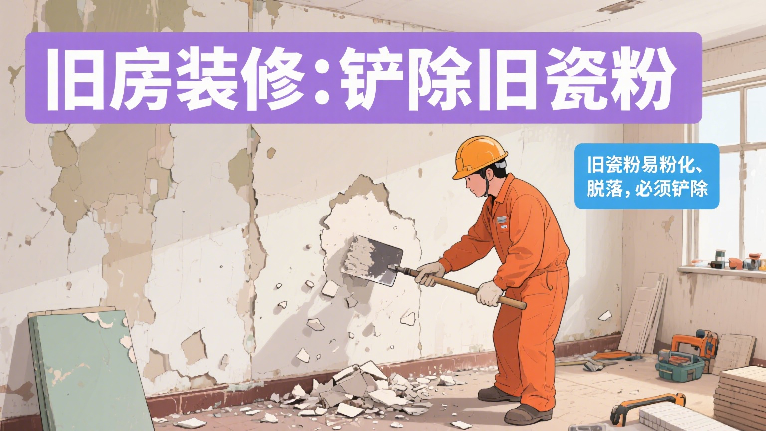 旧房装修时,墙面处理是关键环节,而旧瓷粉是否需要铲除,是很多业主纠结的问题。看似不起眼的瓷粉处理,却直接影响墙面翻新后的质量和使用寿命。下面通过问答形式详细解析。