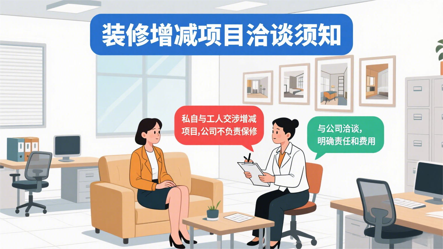 在装修过程中,难免会因为设计调整、需求变化等原因出现增减项目的情况。很多业主可能会觉得直接和施工工人沟通更方便,但这样做其实隐藏着不少风险。下面通过问答形式详细解析。