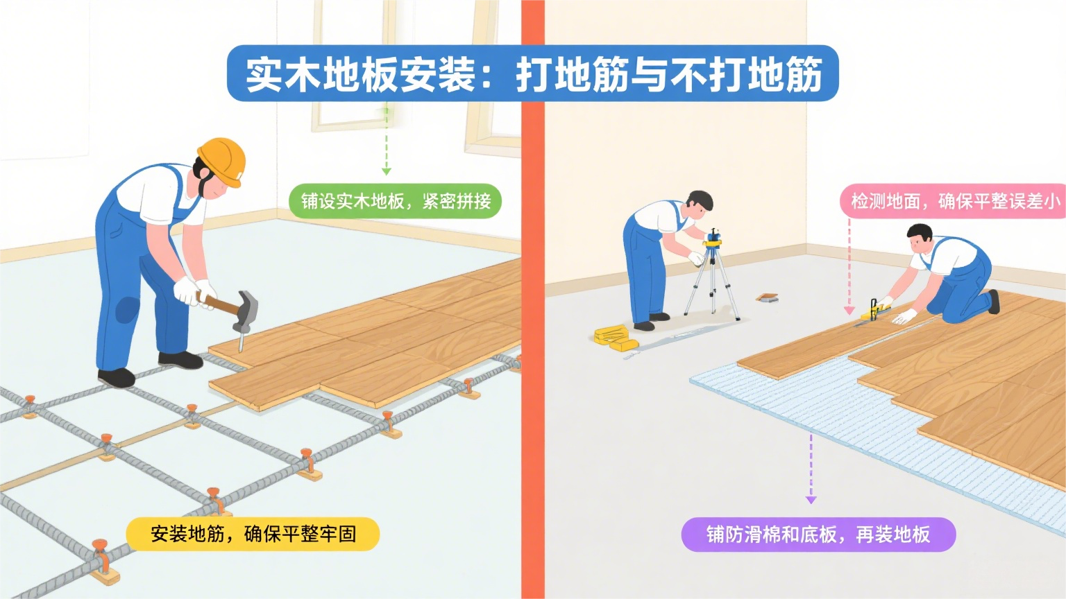 在实木地板的安装过程中,打地筋是常见的步骤,但很多业主会疑惑:不打地筋行不行?其实,这需要结合地面情况和安装需求来判断。下面通过问答形式详细解析。