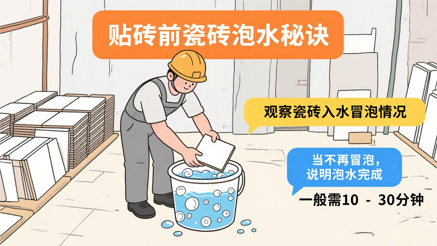 在瓷砖铺贴的准备工作中,泡水是重要环节,很多业主不清楚具体时长。其实,瓷砖泡水的时间并非固定,而是有明确的判断标准。下面通过问答形式详细解析。