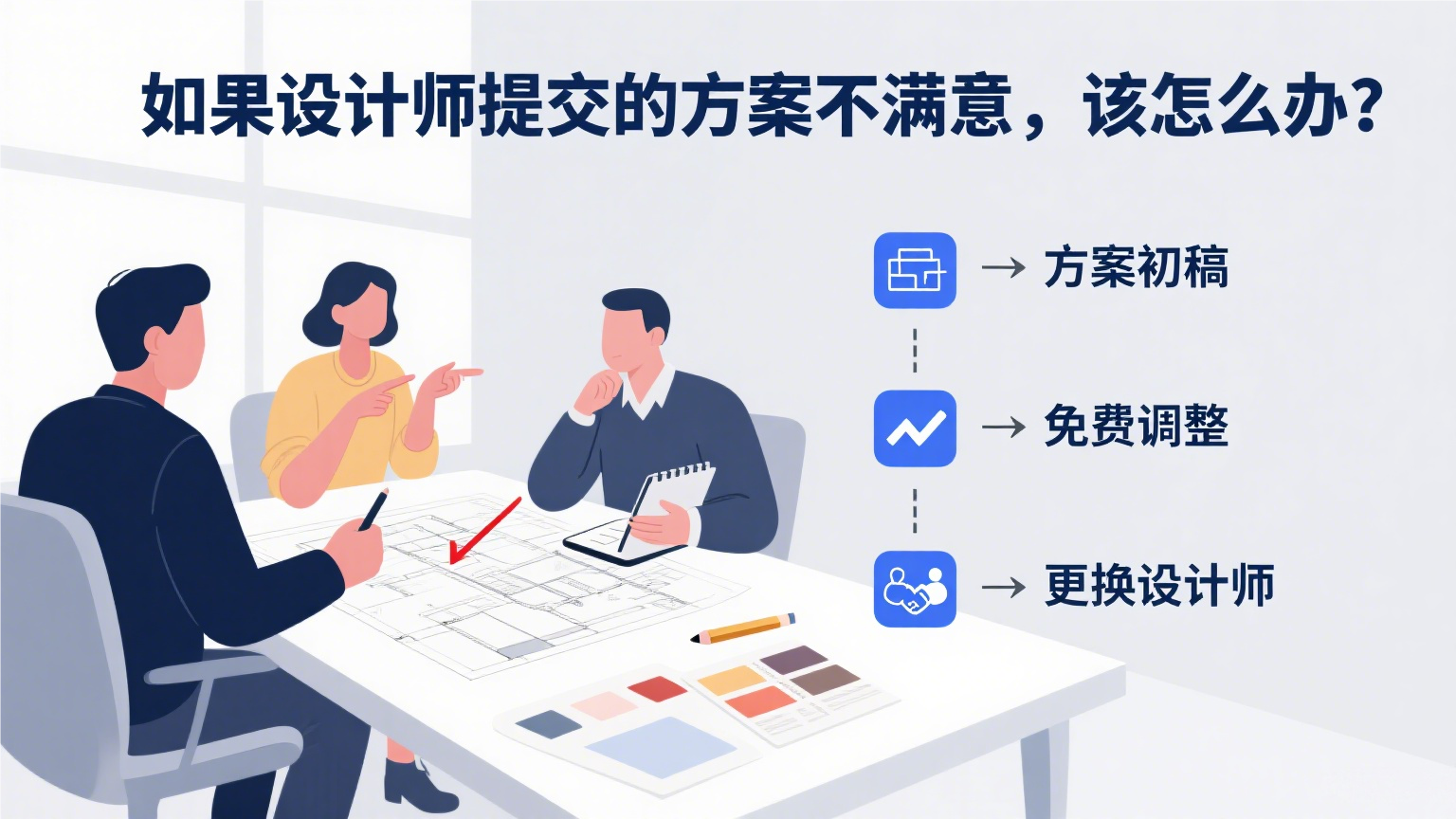 设计师方案是装修风格、功能布局的核心依据,若方案不符合预期,不少业主会担心 “调整收费” 或 “无法更换设计师”,其实多数装修公司都有明确的解决方案,无需过度焦虑,按流程沟通即可高效解决问题。