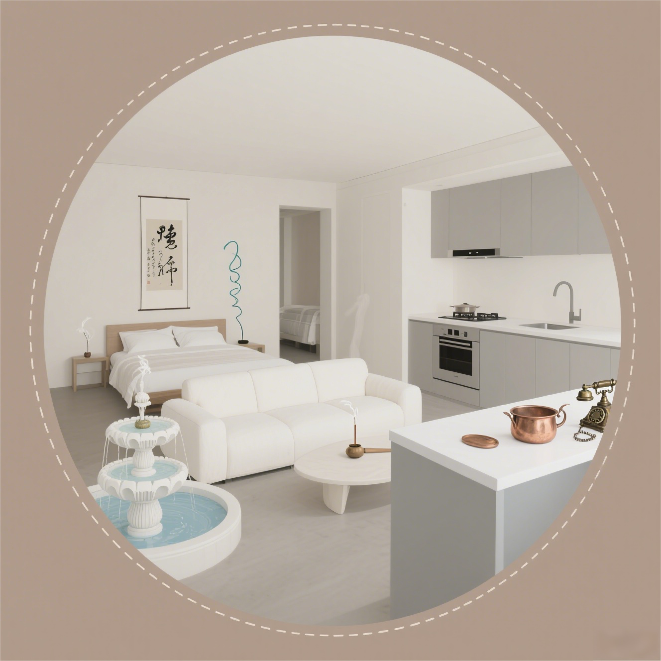室内设计通过空间布局、器物陈设与生活场景的融合体现文化。以禅意设计为例,客厅的迷你喷泉、卧室的书法与香炉、厨房的有序分区,将 “宁静”“从容” 的生活方式转化为可感知的光影、触感与声音。文化不必刻意堆砌,而是融入日常起居,让居住者在空间中自然感受心灵的安放。