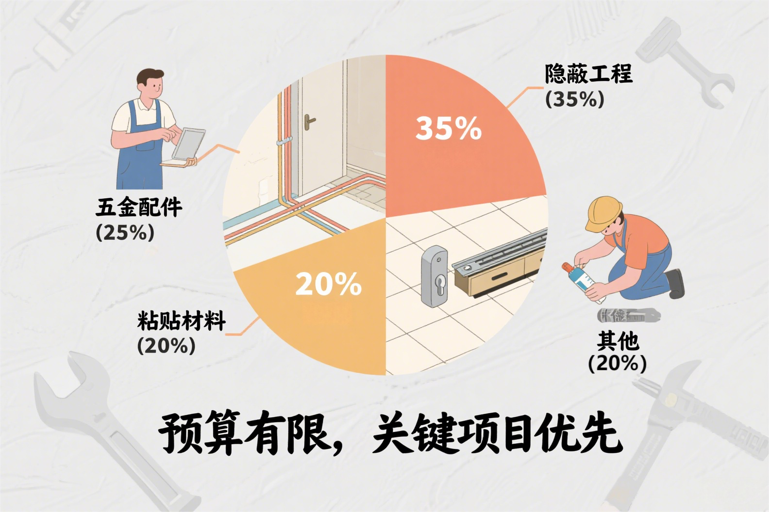 装修报价中的综合预算与二级精算有何本质不同?综合预算以 "项目打包" 形式快速核算总价,如 100㎡墙面漆直接按 45 元 /㎡算出 5175 元,适合简装项目快速锁定预算;二级精算则将项目拆解至材料与人工的最小单位,如一扇拼花门细分到大芯板、油漆等具体用料,通过公式精准计价至 800 元。前者效率高但需警惕增项风险,后者通过材料明细清单彻底杜绝偷工减料,尤其适合高端定制装修。掌握两种体系的差异,能帮助业主从 "预算模糊" 升级为 "精准管控",让每一分装修预算都对应清晰的实物产出。
