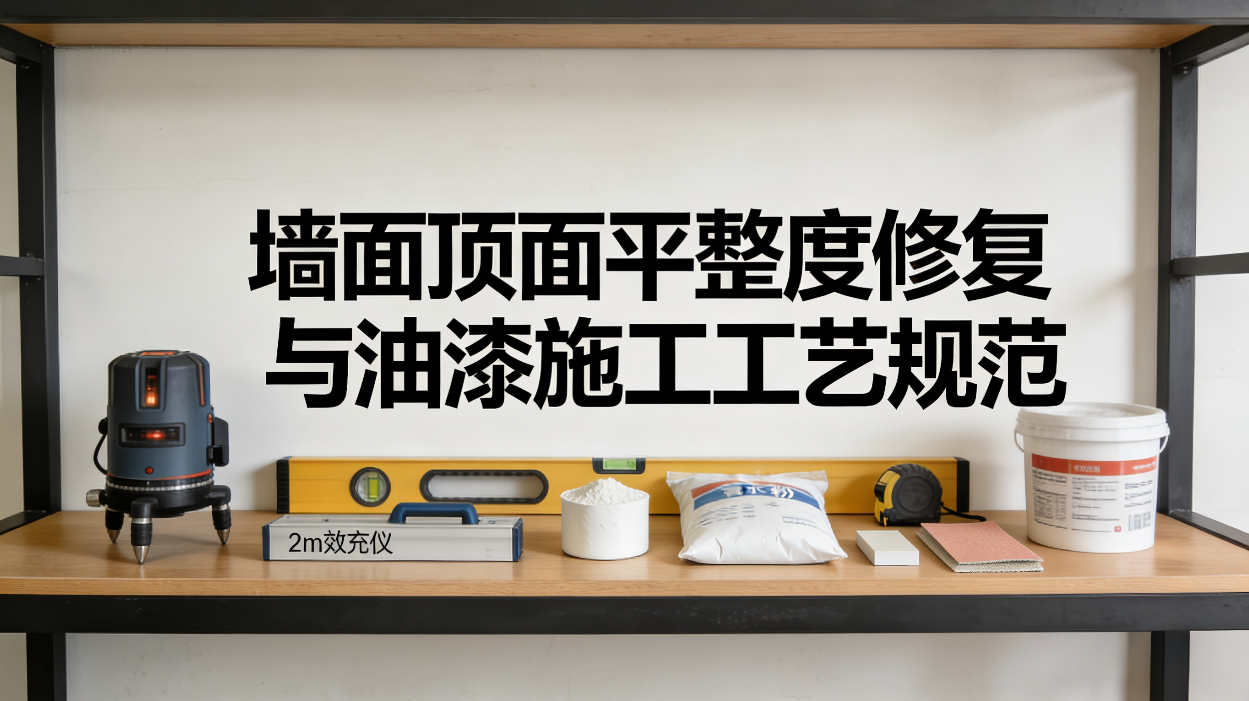 本文针对墙面顶面平整度问题,提出系统化修复方案,涵盖阴角基准线设置、分层填补、三维检测等核心技术,详细规定白水泥找平、腻子批刮的工艺参数。通过光照检测与多级质量控制,确保基层平整度误差≤3mm/2m,为油漆施工提供优质基底。内容注重实操性与数据化标准,适用于装饰工程基层处理及油漆施工指导。